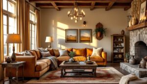 Layering texture is equally critical. A heavy linen sofa, chunky wool throw, jute area rug, and raw wood accents create visual interest and tactile warmth. The key is varying surface finishes: pair smooth leather with rough woven elements, matte ceramics with polished wood. This contrast prevents the room from feeling flat or theme-park-forced. Consider a deep burgundy or forest green accent wall to anchor the space, especially on the wall opposite the seating area where it draws the eye without overwhelming the room. Apply a quality interior paint (typically 200–400 square feet per gallon coverage) to ensure even finish and durability through temperature fluctuations.